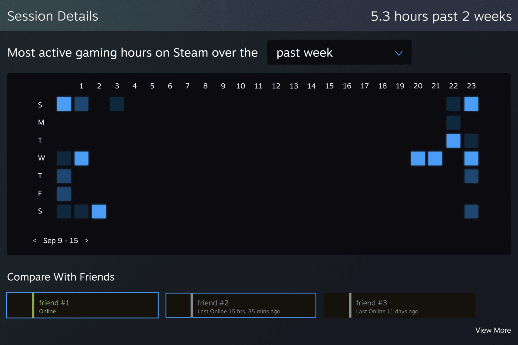 Steam playtime heatmap for coordinating gaming sessions with friends.