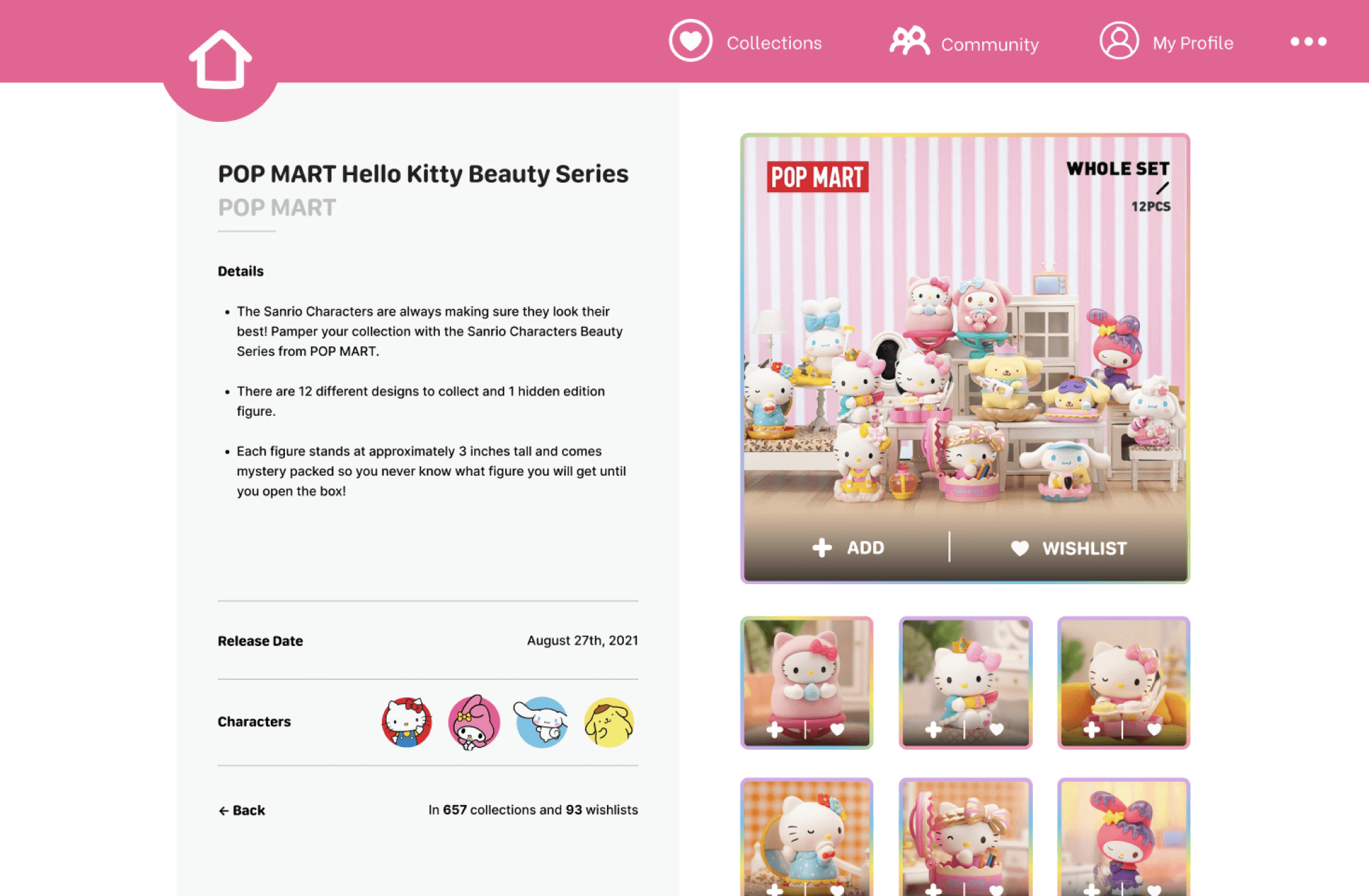 Website prototype for Sanrio blind box collectors.